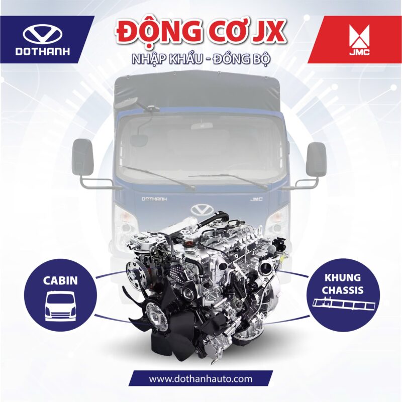 Thông qua nghiên cứu, sàng lọc và thực nghiệm kỹ càng trên động cơ, JX chính là lựa chọn hàng đầu, trở thành “trái tim” của hầu hết phiên bản xe tải DOTHANH IZ hiện nay.