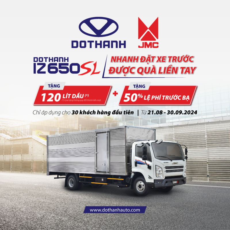 Duy nhất dành tặng 𝟑𝟎 𝐯𝐢̣ 𝐤𝐡𝐚́𝐜𝐡 đầu tiên khi ký_hợp_đồng và đặt cọc xe tải mới DOTHANH IZ650SL.