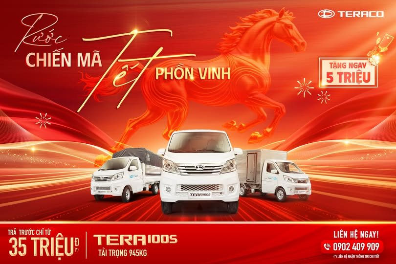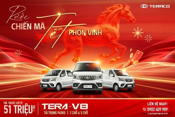 ✨ RƯỚC CHIẾN MÃ – TẾT PHỒN VINH 🚐 Tera-V8 – Trả trước chỉ từ 51 triệu đồng Mùa cao điểm cuối năm là thời điểm nhu cầu giao nhận hàng hóa trong nội thành tăng mạnh, đòi hỏi một dòng xe bền bỉ, linh hoạt và vận hành liên tục 24/7. Tera-V8 với tải[ …]