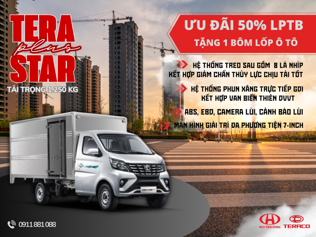 TERA STAR PLUS với tải trọng lên đến 1.250kg đang nhận được sự quan tâm đặc biệt của khách hàng trong phân khúc 1-2 tấn, nhờ vào khả năng tải nhiều hàng hóa hơn và sở hữu công nghệ động cơ, tính năng an toàn, thiết kế nội ngoại thất cũng như trang bị tiện nghi như TERA STAR như;