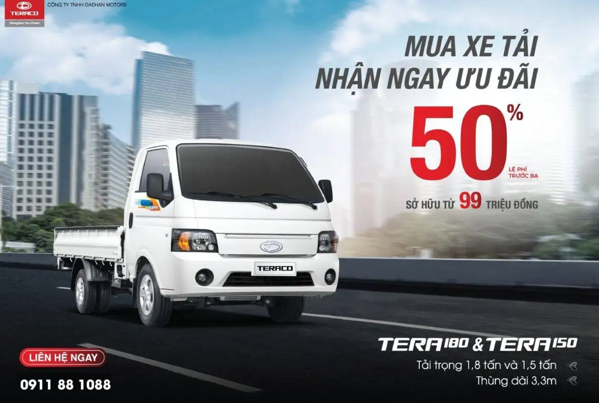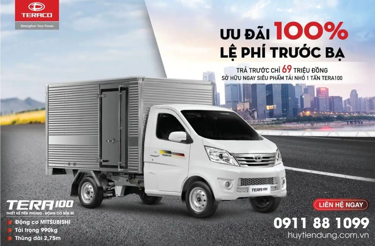 Daehan Motors hỗ trợ 100% LỆ PHÍ TRƯỚC BẠ cho khách hàng khi mua xe tải TERA100. Đồng thời, Quý khách hàng được sở hữu ngay “siêu phẩm” tải nhỏ phân khúc 1 tấn chỉ từ 69 triệu đồng với gói vay ưu đãi. TERA100 là tải nhỏ dưới 1 tấn với tải trọng 990kg […]