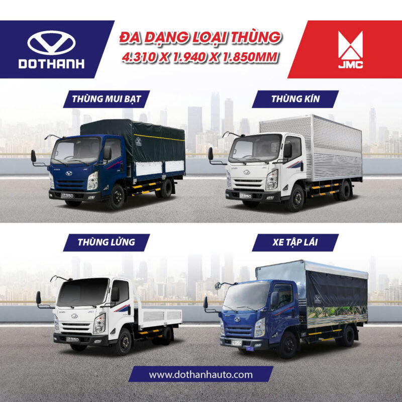 DOTHANH IZ350 là giải pháp đầu tư thông minh cho nhiều nhà vận tải cá nhân, doanh nghiệp cho công cuộc vận tải hàng lâu bền. Động cơ Diesel ISUZU - Tech (106 mã lực) tự tin đáp ứng hiệu suất ổn định và tiết kiệm nhiên liệu. Lòng thùng 4.310 x 1.940 x 1.850mm (dài x rộng x cao) thích hợp để chở hầu hết mặt hàng phổ thông, tiện di chuyển cả trong nội thành lẫn ngoại tỉnh.